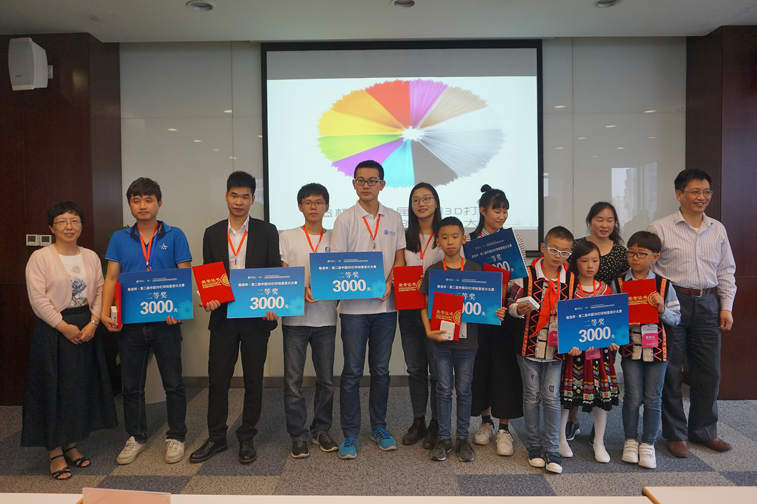 本屆數(shù)造杯·全國(guó)3D打印創(chuàng)意設(shè)計(jì)大賽取得了圓滿成功!盧院士攜眾評(píng)委與參賽選手合影留念。
