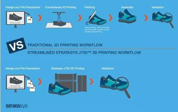 從上圖我們可以看到,J750只需一次打印作業(yè)就制造出了一只完整的運動鞋。“這款3D打印機最重要的一點就是突破了現實的門檻。”Stratasys公司首席商務官Josh Claman說。